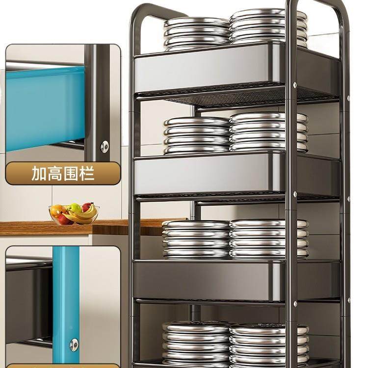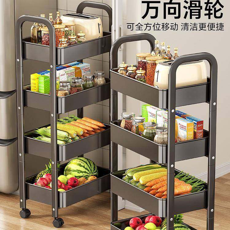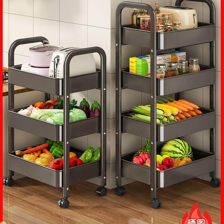 厨房置物架果动小推车落地家用可移能多层架子多功放蔬菜篮PUO收