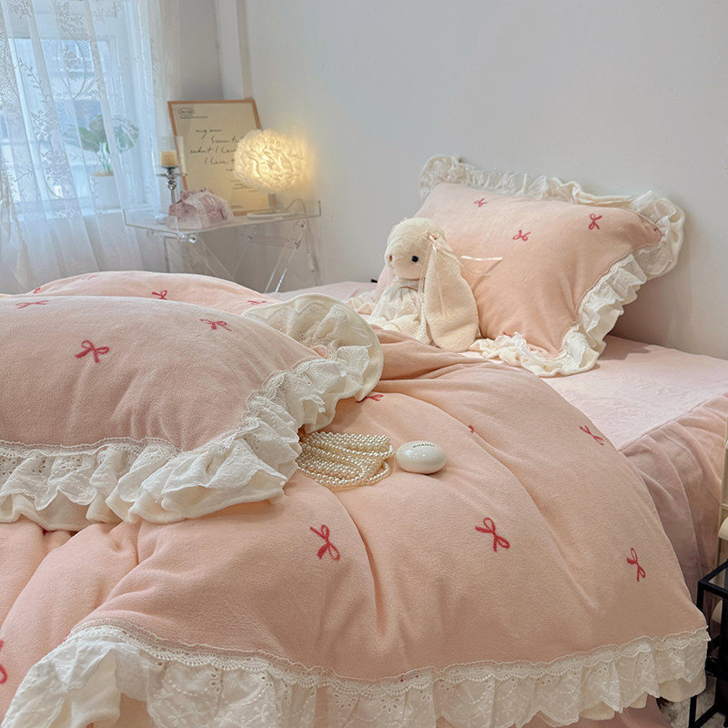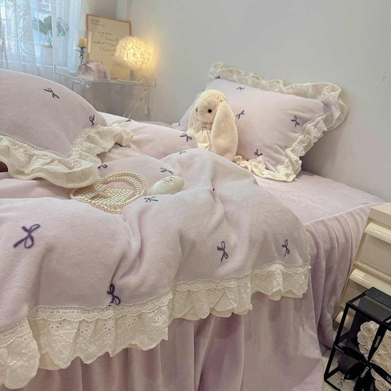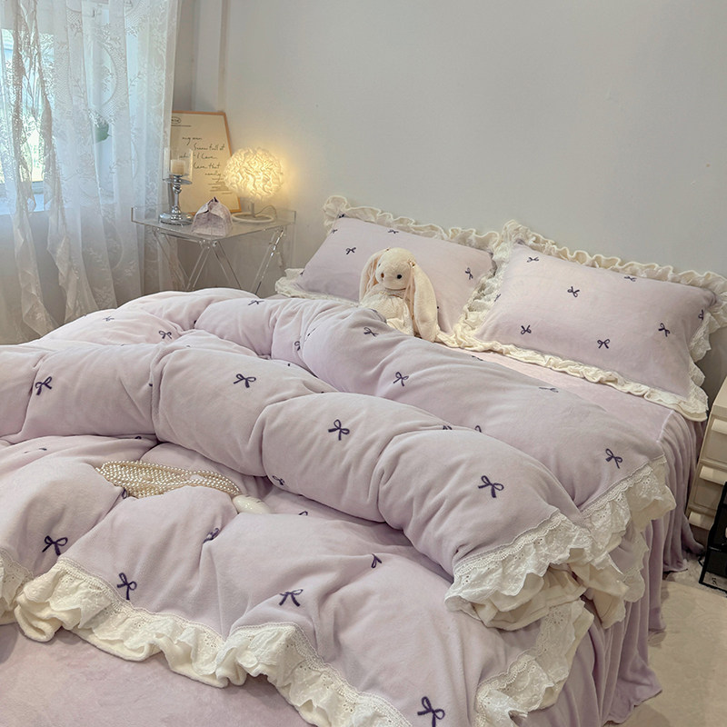 秋冬加厚牛奶绒床裙款四件套
