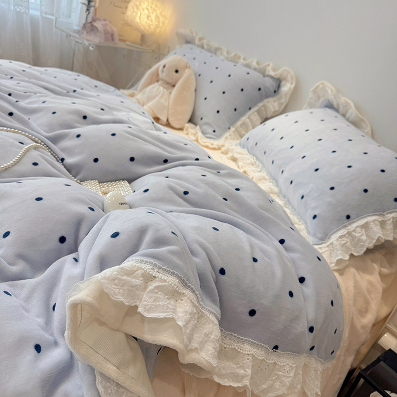 ins波点秋冬加厚牛奶绒床裙款四件套珊瑚绒床单被套床笠双人床品4