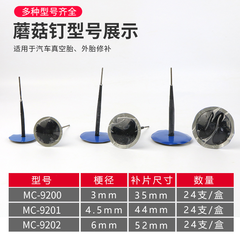 迈克蘑菇钉补胎胶片3/4.5/6mm毫米汽车轮胎真空胎冷补贴片胶水