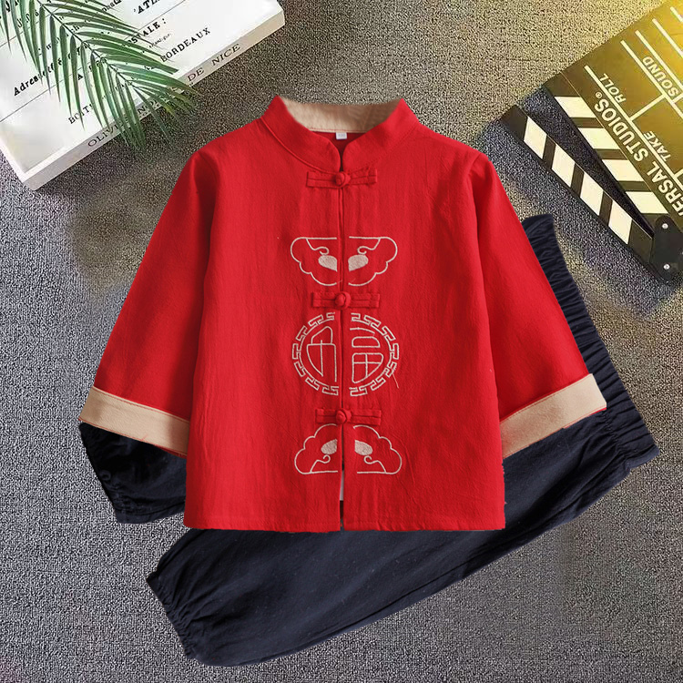 男童唐装中国风古装汉服儿童节日表演活动宝宝周岁抓周礼服春秋棉