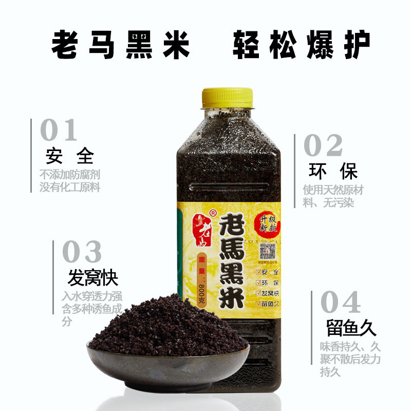 老马黑米黑坑野钓鲫鱼鲤鱼打窝料传统台钓底窝泡酒米饵料窝米鱼食