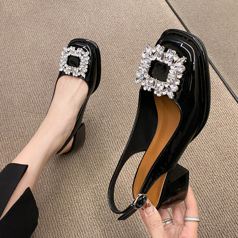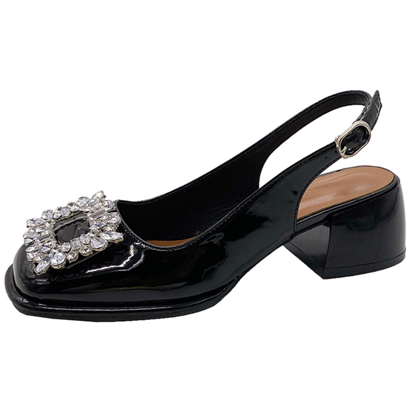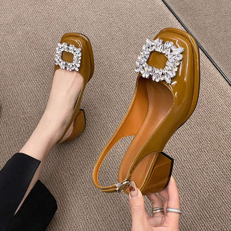 法式温柔水钻粗跟玛丽珍包头凉鞋