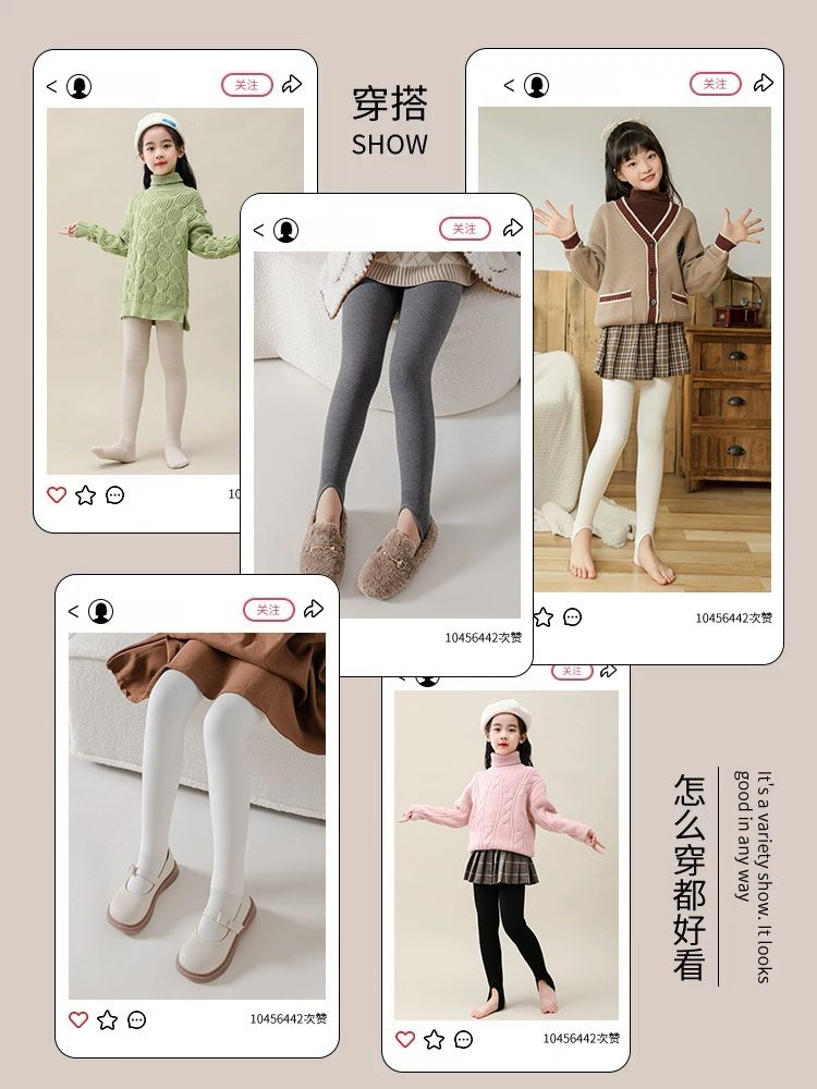 女童打底裤秋冬款加绒加厚儿童纯棉舞蹈连裤袜中大童踩脚裤子薄绒