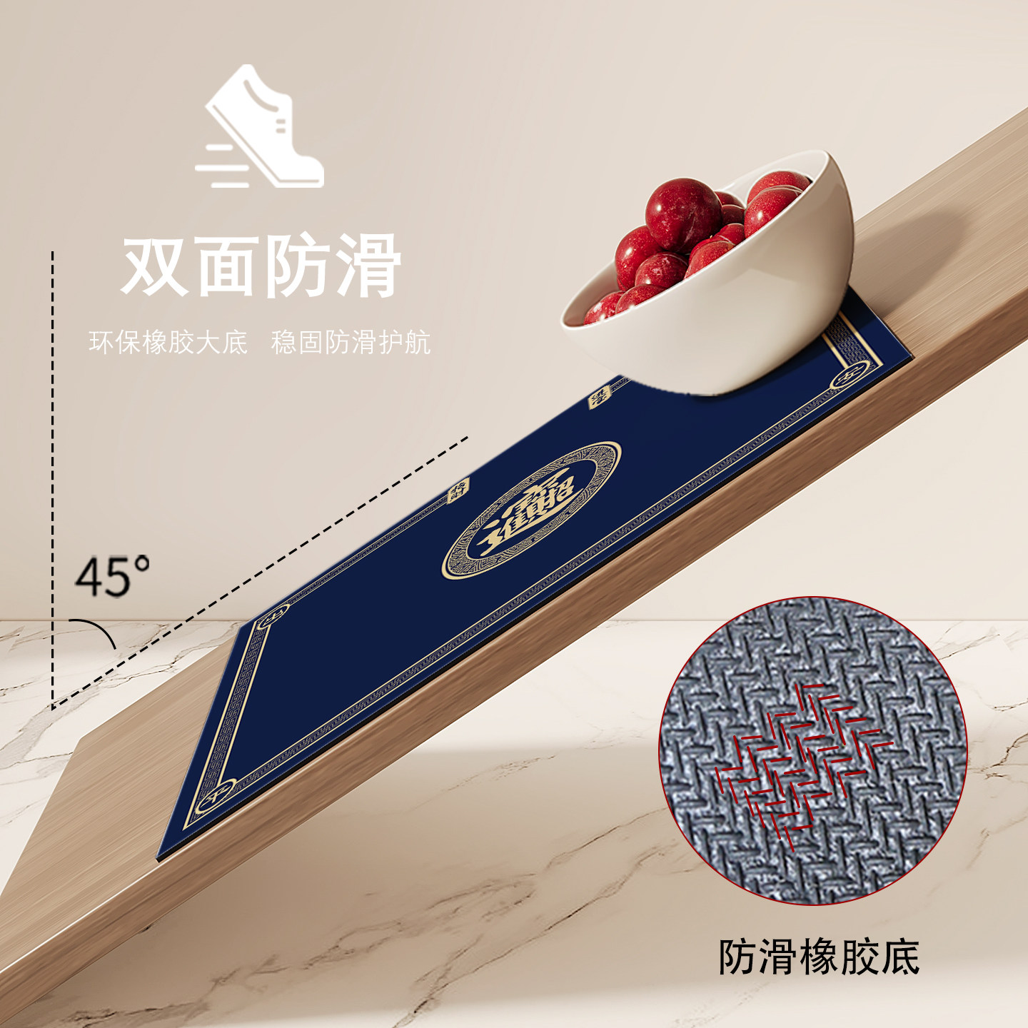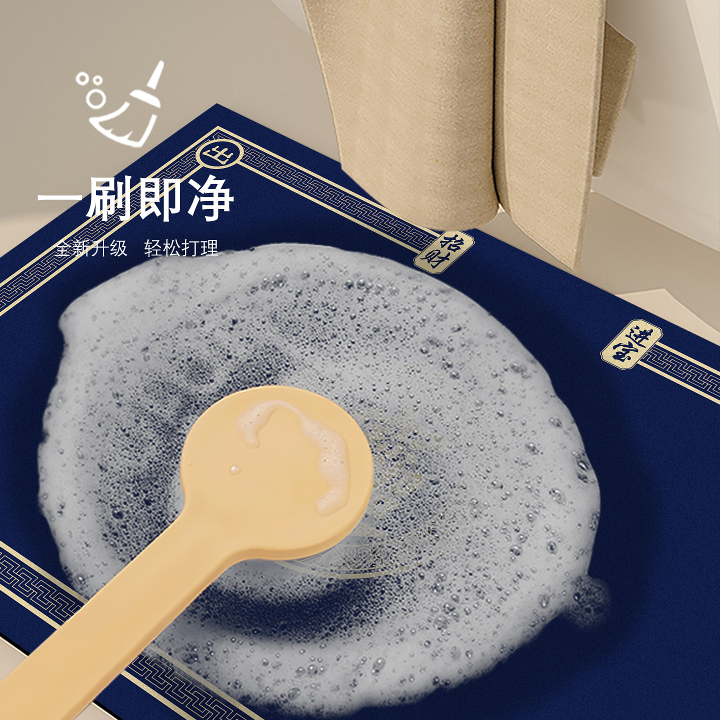 中式硅藻泥入户门地垫新款蓝色招财进宝地垫进门防滑脚垫耐脏玄关