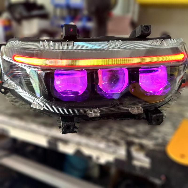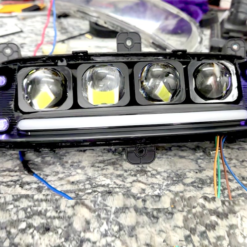 矩阵LED透镜大灯改装电动车远近光泡超亮平一字切线55W升级模组双