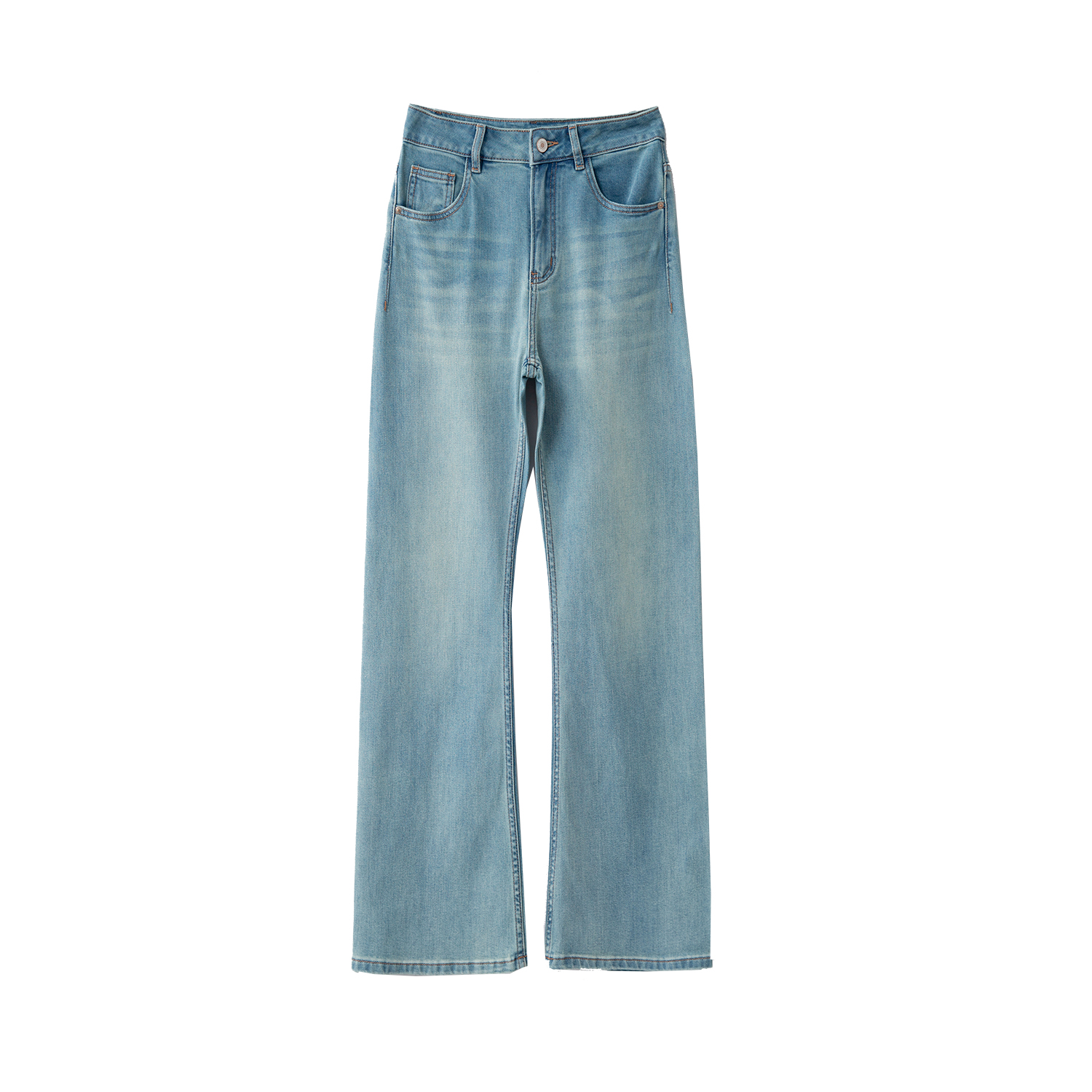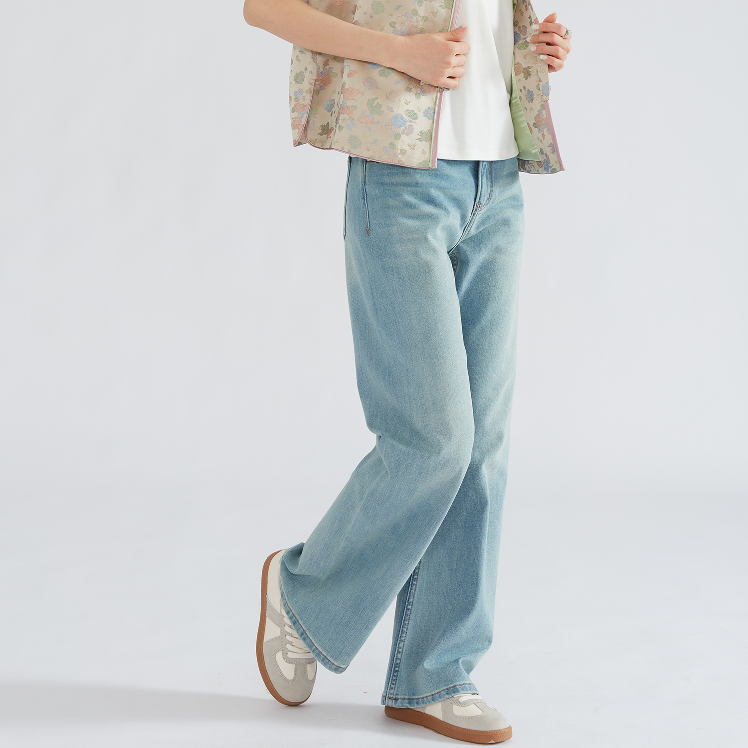 一丝牵 桑蚕丝莱赛尔微喇牛仔裤真丝一片式无缝直筒裤长裤休闲裤