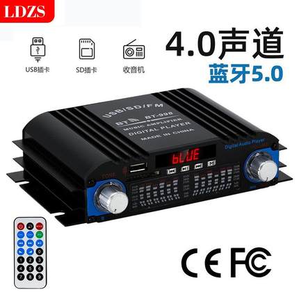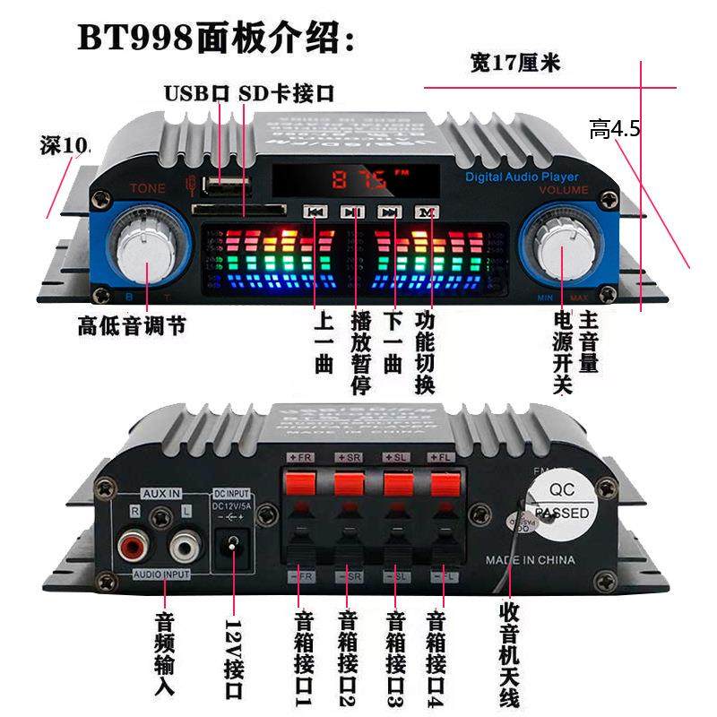 跨境热销BT-998四声道蓝牙12V汽车家用功放机亚马逊外贸热销产品