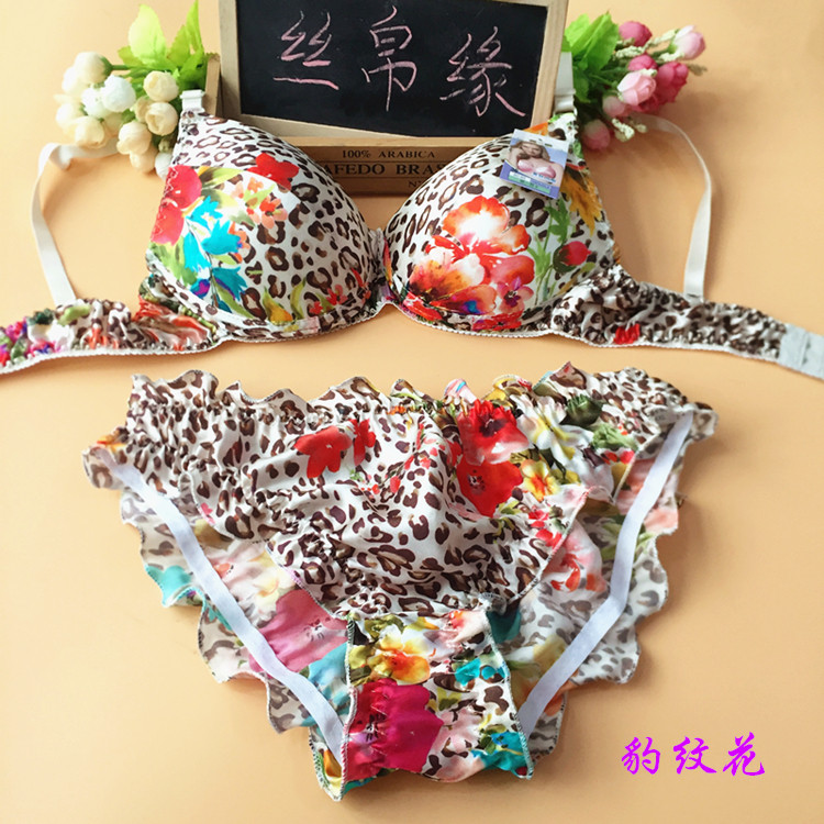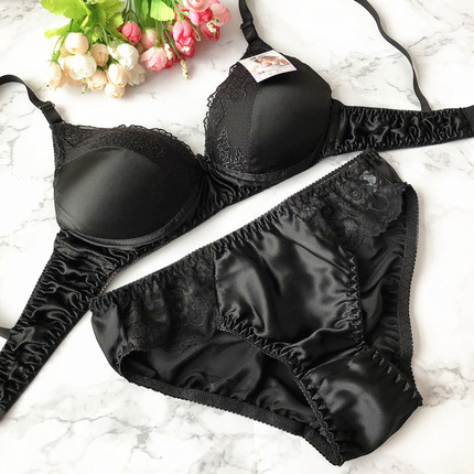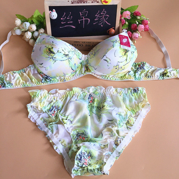 包邮 桑蚕丝女无钢圈定型文胸套装 女士真丝内衣两件套
