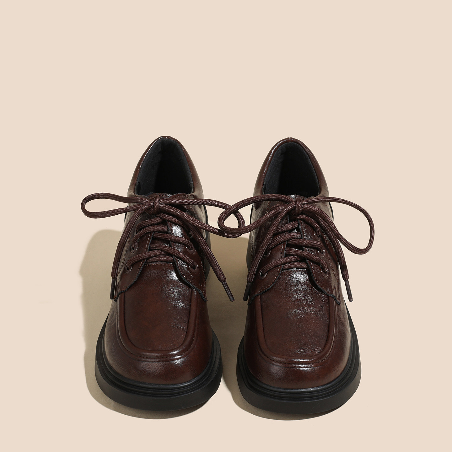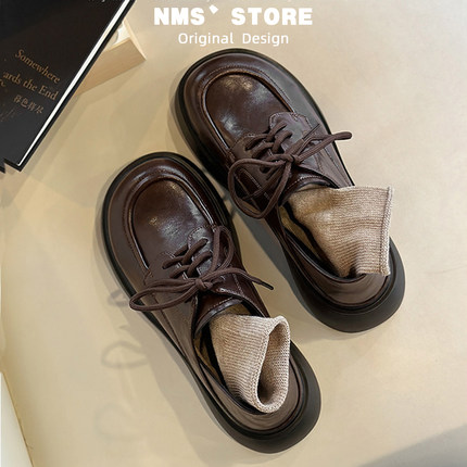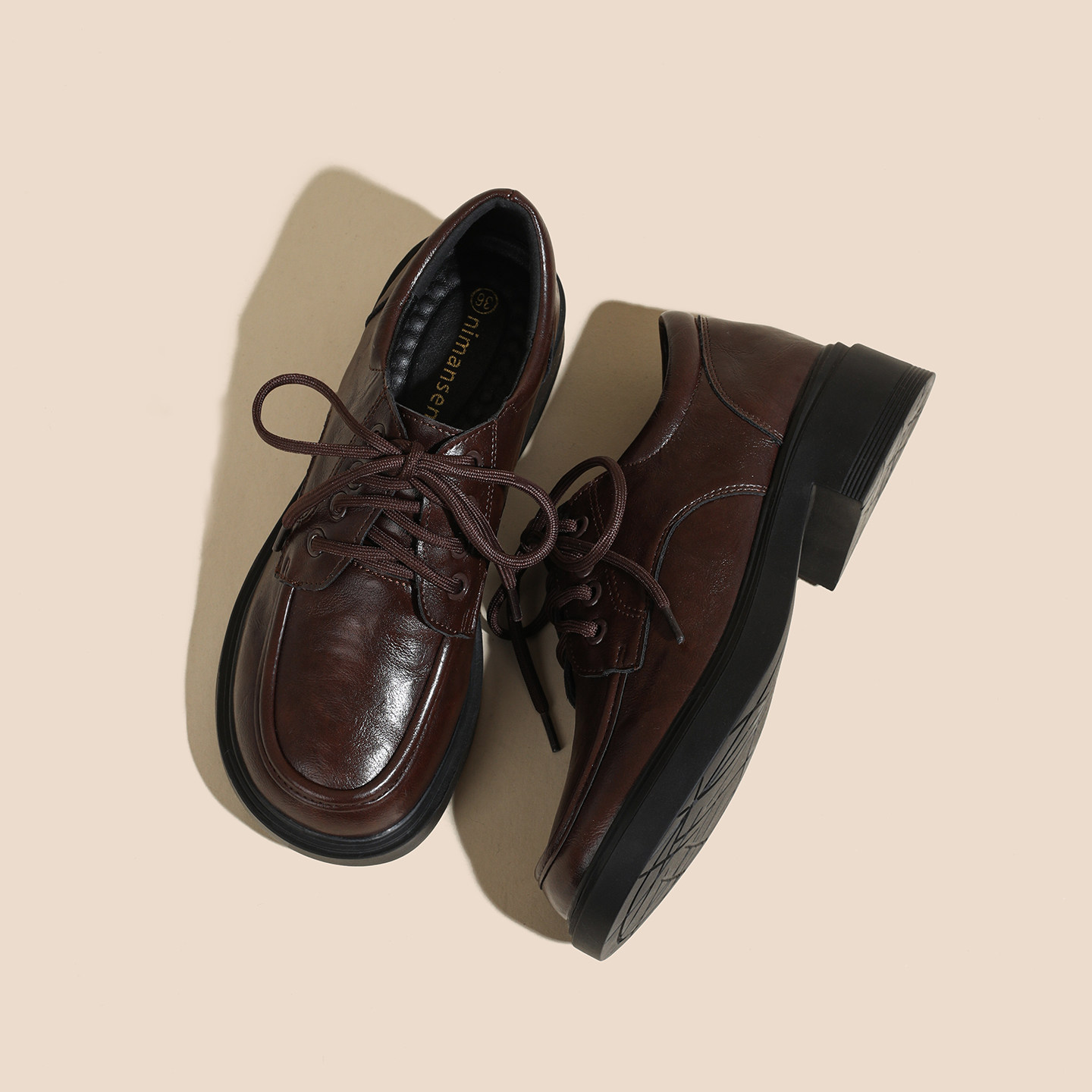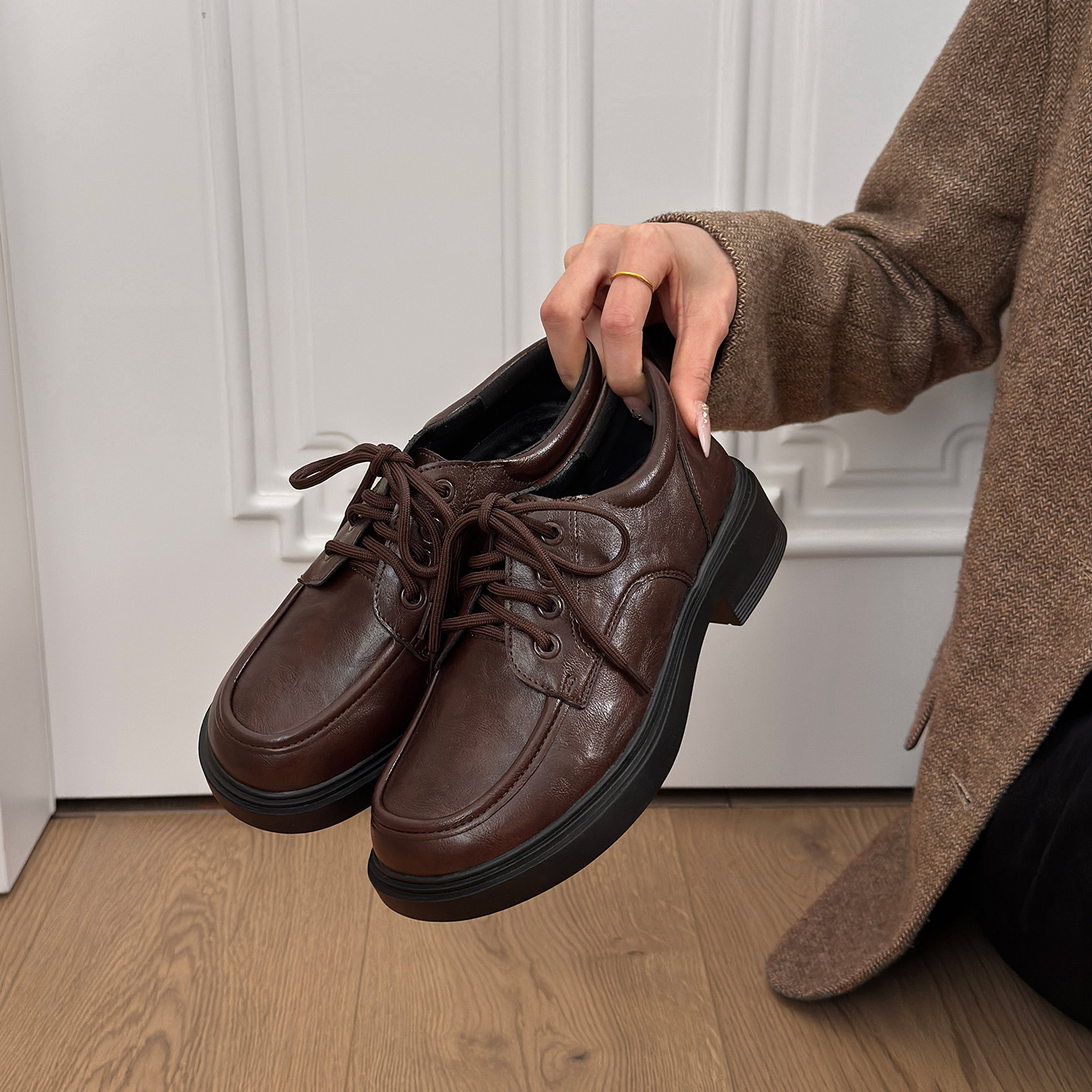 真皮乐福鞋女2026春秋新款平底单鞋玛丽珍棕色厚底英伦风小皮鞋