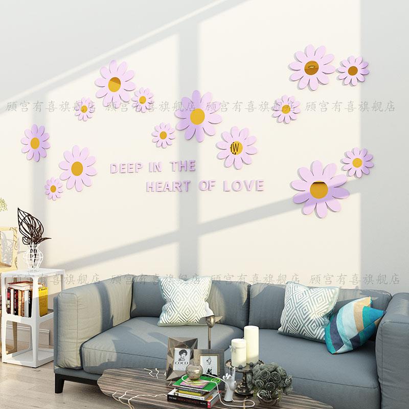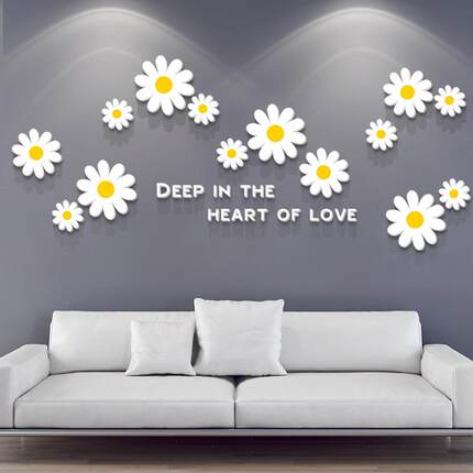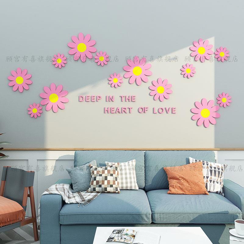 客厅卧室店铺背景墙面装饰画贴画纸布置北欧温馨雏菊小花朵立体粘