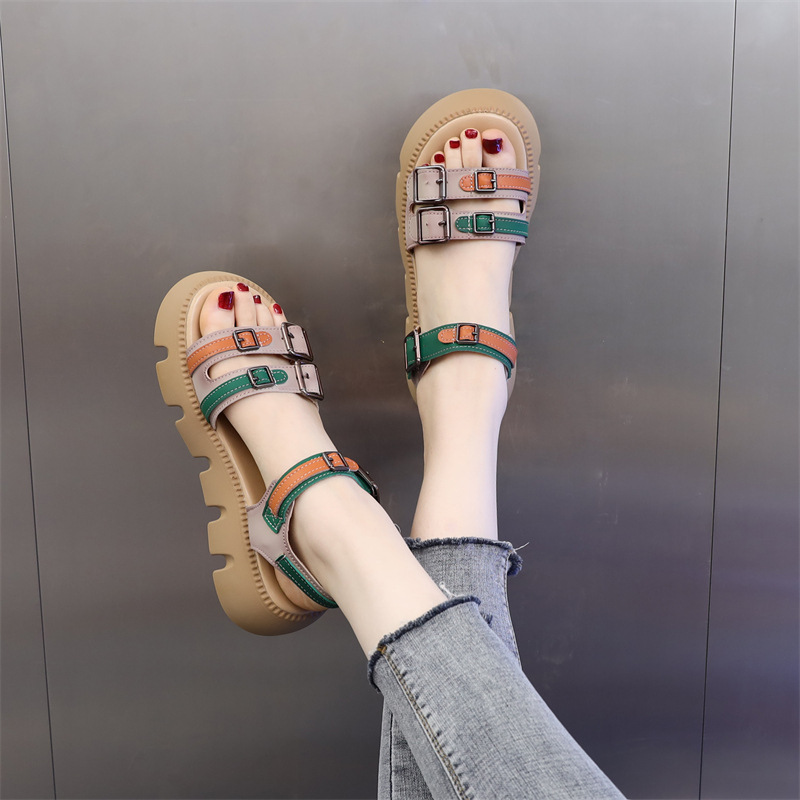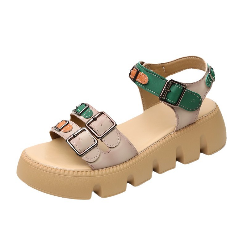 真皮软底厚底凉鞋女2025年夏季新款时尚真皮松糕加厚软底罗马鞋