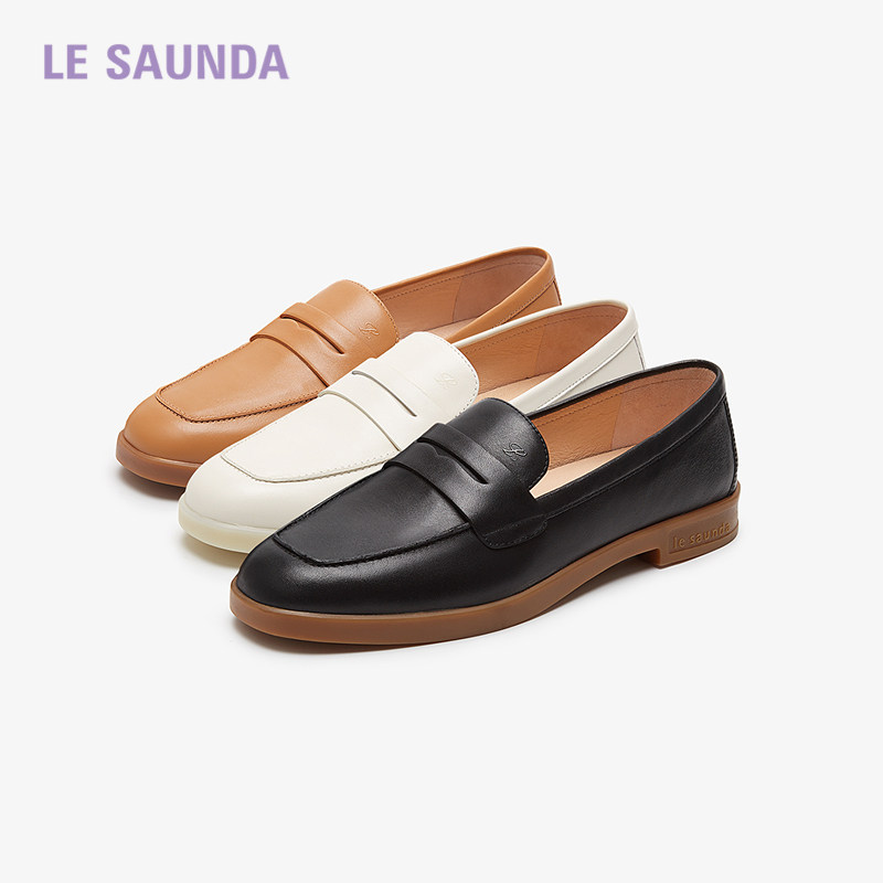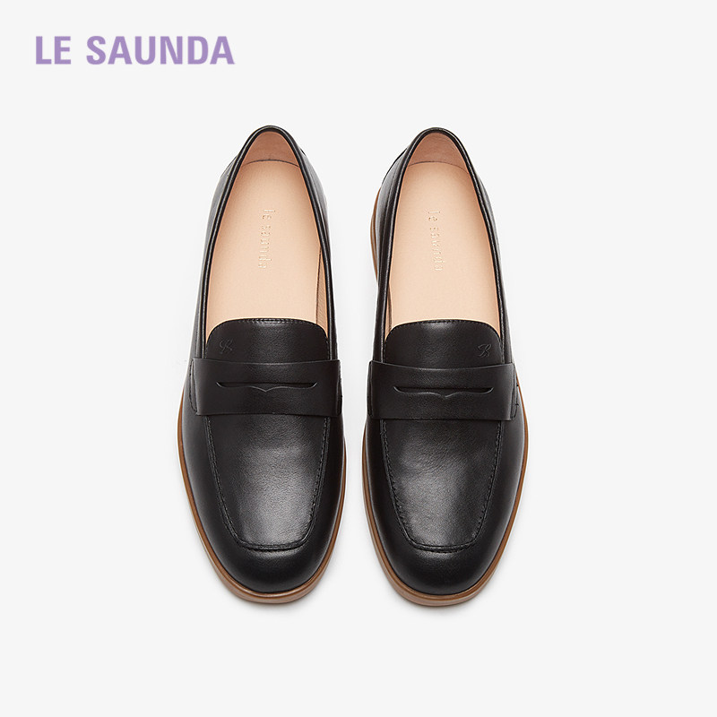 莱尔斯丹新款新款商场同款优雅低跟圆头深口乐福女鞋5M20701
