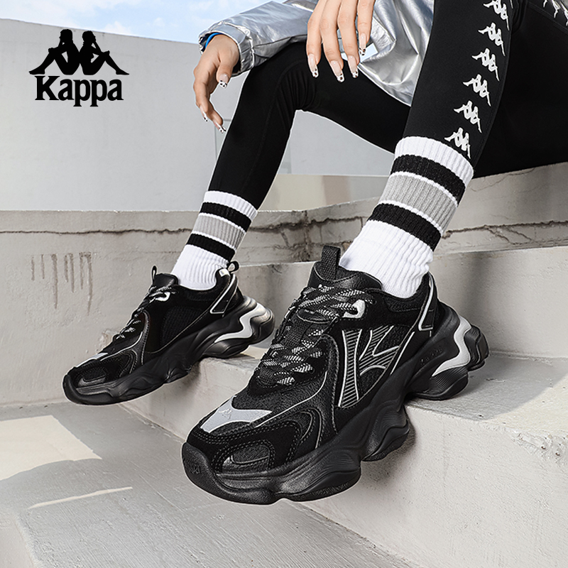 Kappa卡帕黑色运动鞋男款2025爆款老爹鞋春秋新款情侣厚底鞋子女