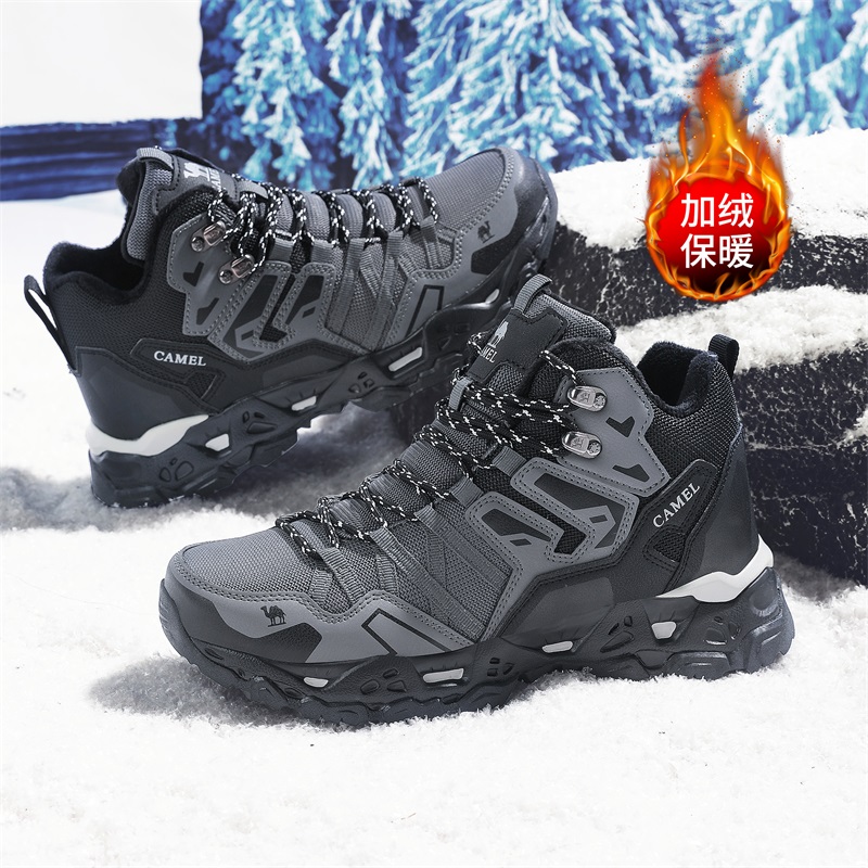 冬季骆驼马丁靴男鞋加绒保暖高帮厚底棉鞋休闲百搭运动户外登山鞋