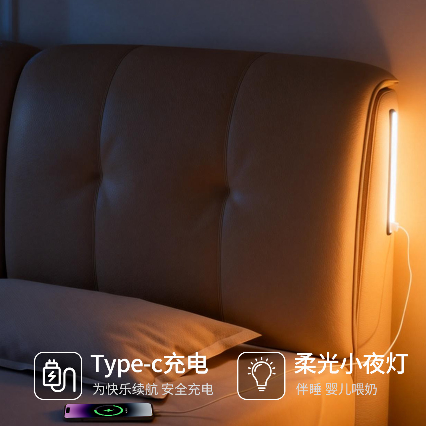 奶油风软靠包储物真皮床主卧箱体高箱电动平移双人床