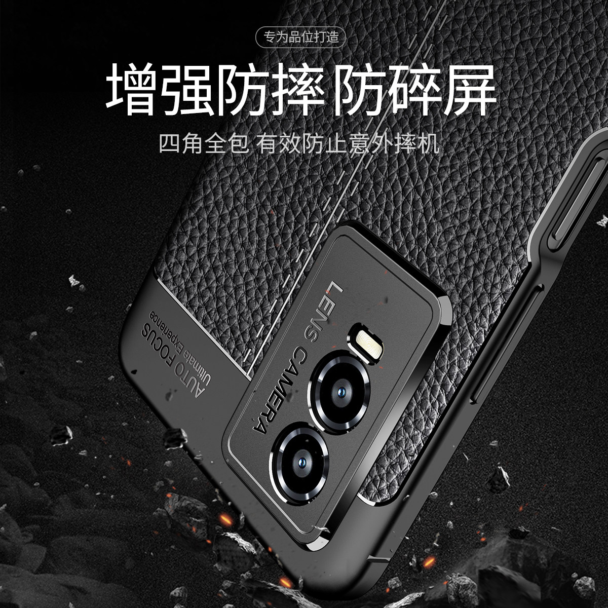 适用vivoy76s手机壳皮纹磨砂