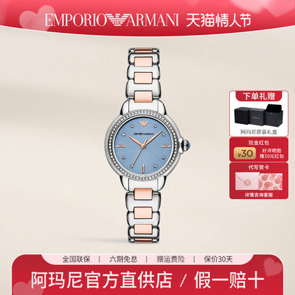 Armani阿玛尼手表女 冰蓝色 拼接钢带时尚女表官方正品AR11597