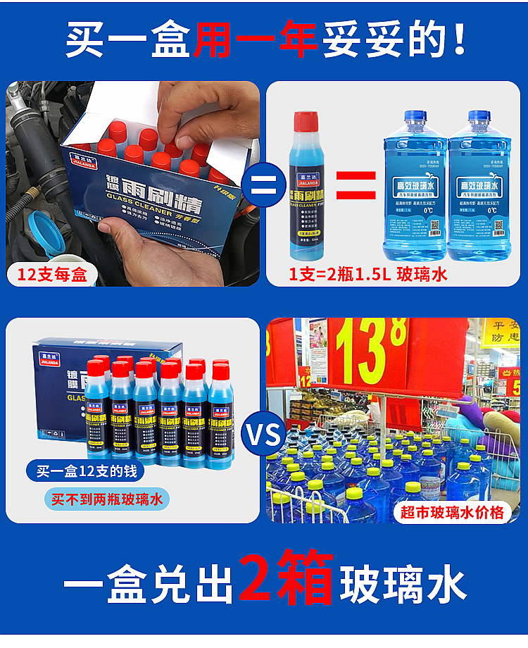 【一支=2瓶玻璃水】浓缩雨刷精汽车玻璃水四季雨刮精清洁清洗剂