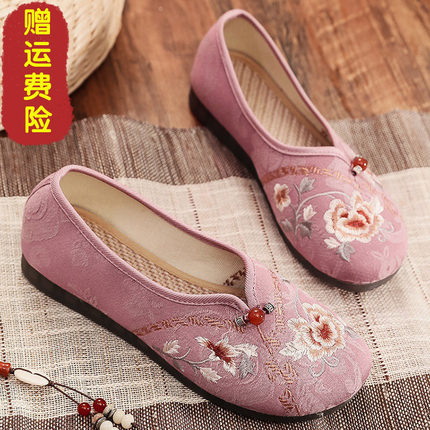 2025年新款老北京布鞋夏绣花鞋正品牛筋底防滑妈妈鞋软底平跟单鞋