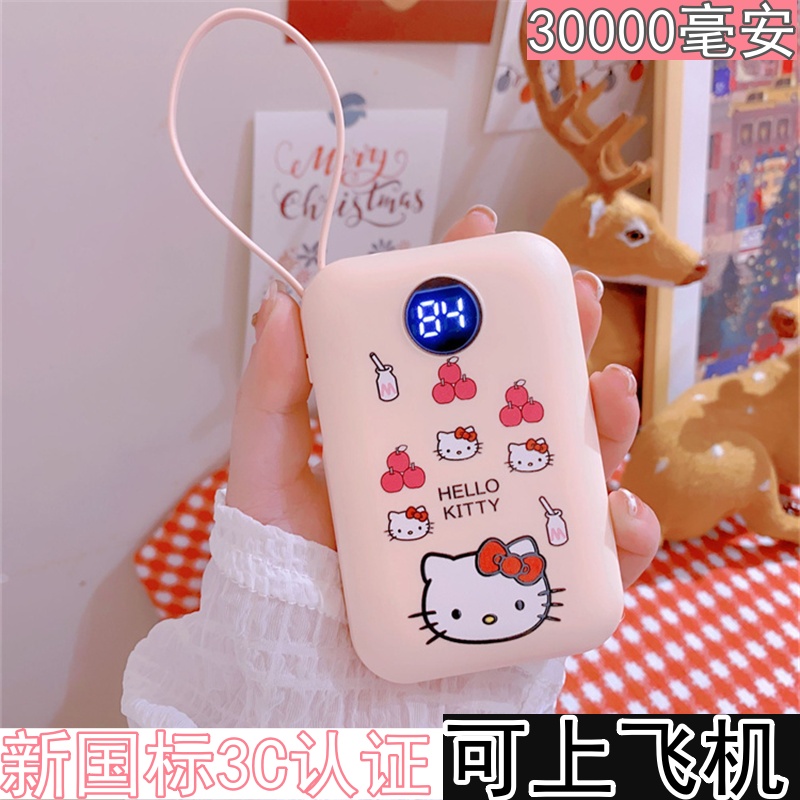 【3C认证】充电宝可爱30000毫安小巧便携自带线超级快充可上飞机