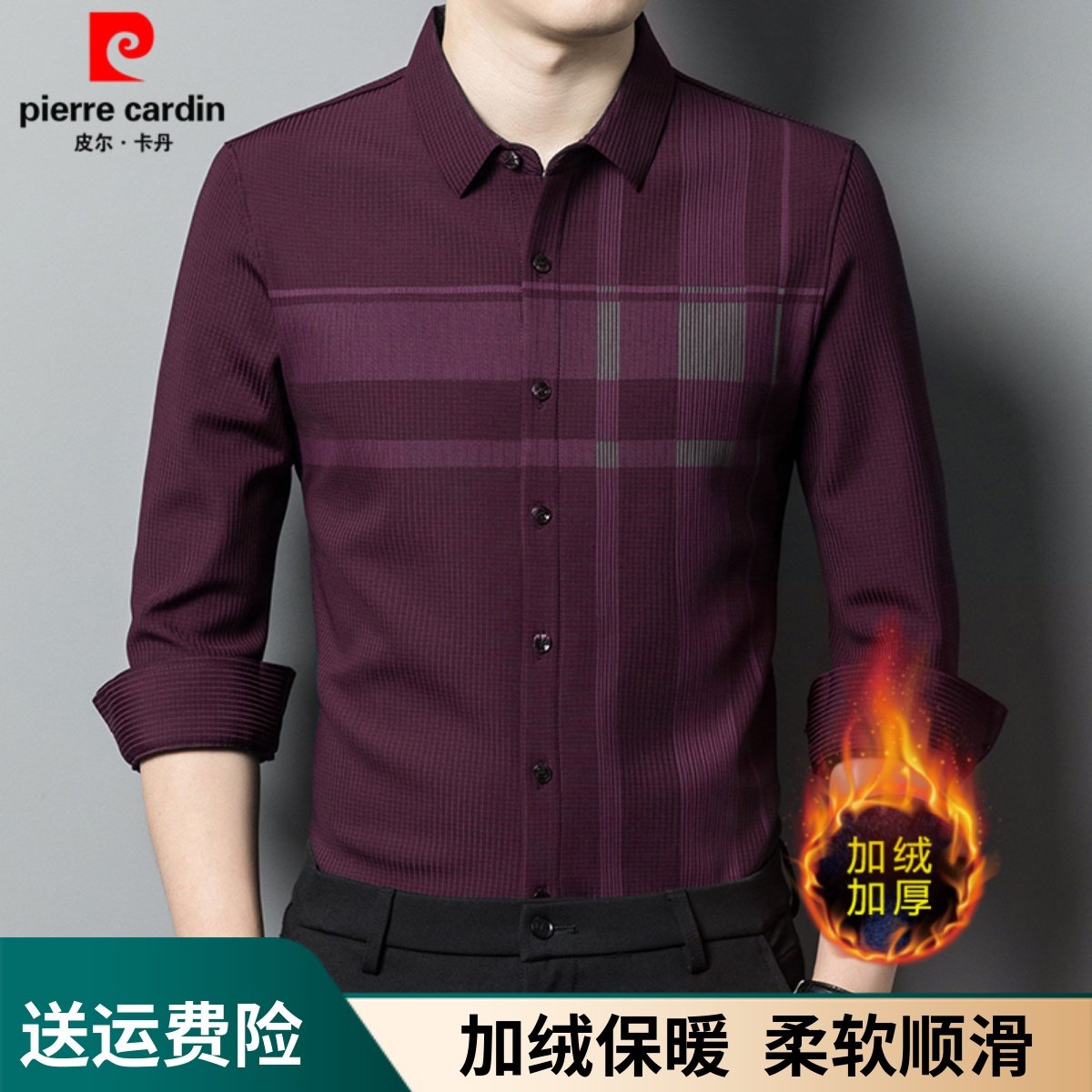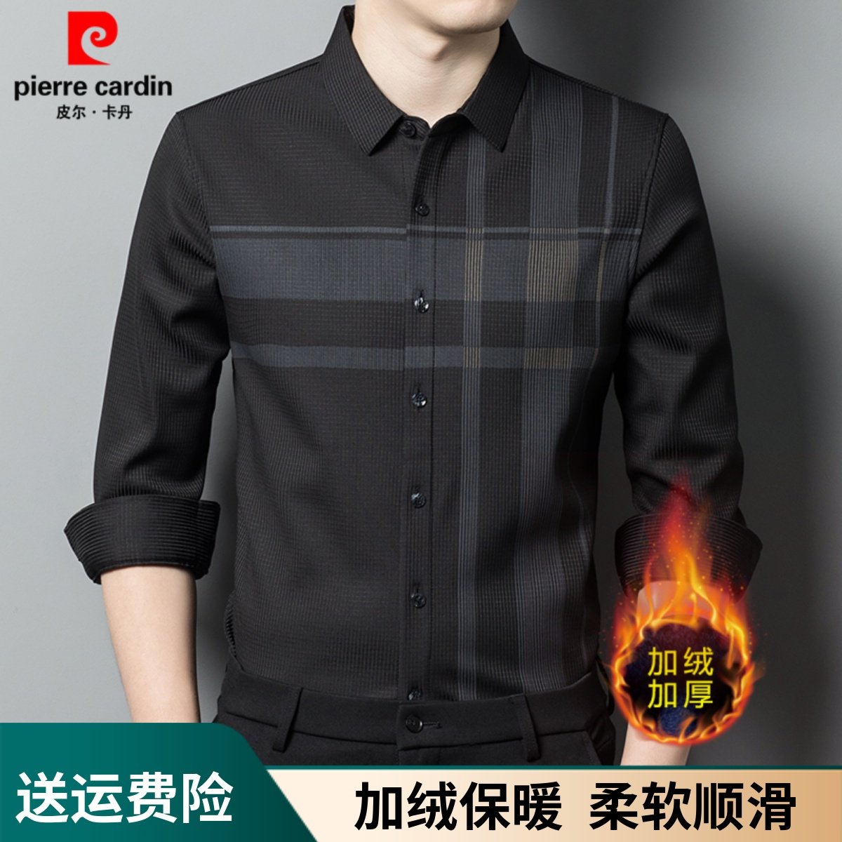 皮尔卡丹一体绒免烫保暖格子衬衣