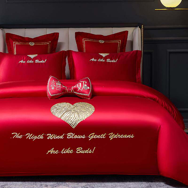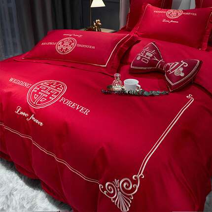 极速新品c结婚四件套婚庆红色婚房喜被床单刺绣被套被单婚礼大红