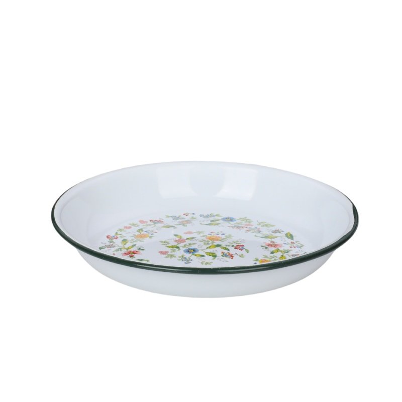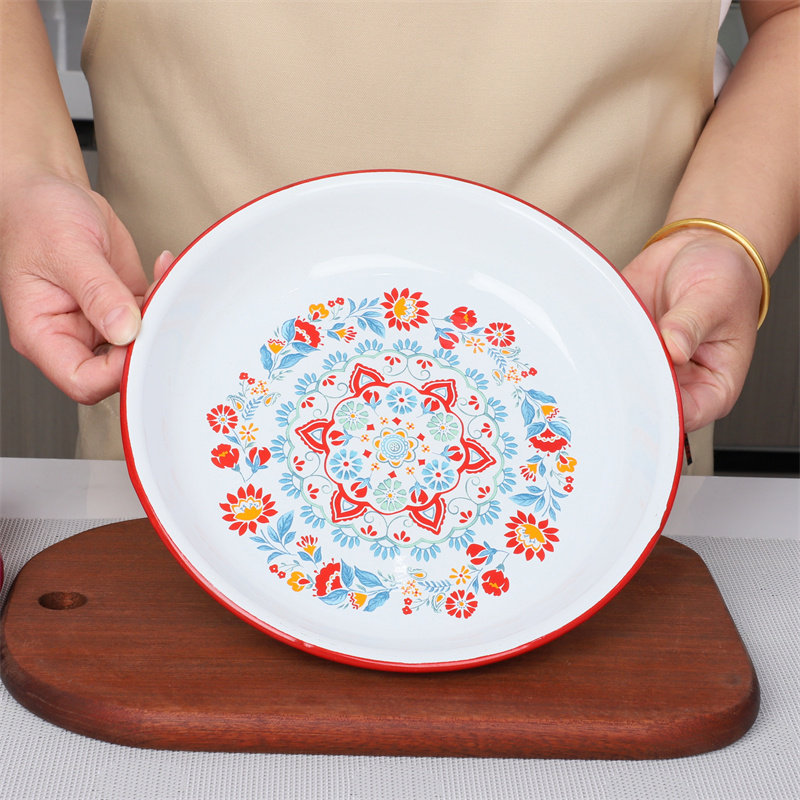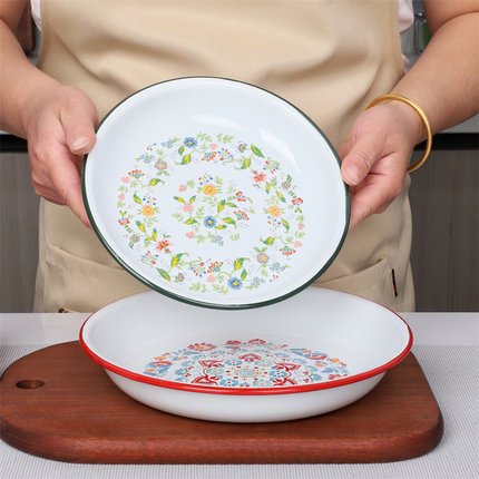 加厚搪瓷饭碟家用盛菜盘子深型圆盘平底盘拌菜盘搪瓷汤盘圆盘果盘