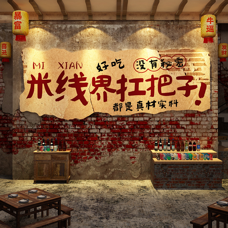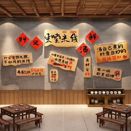 网红复古米线店墙面装饰氛围餐饮云南文化场景布置创意广告贴纸画