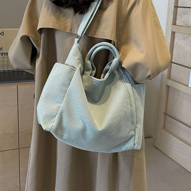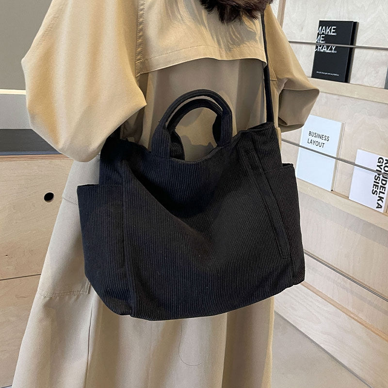 条绒帆布包女2026新款大容量手提袋单肩通勤包百搭上课斜挎托特包