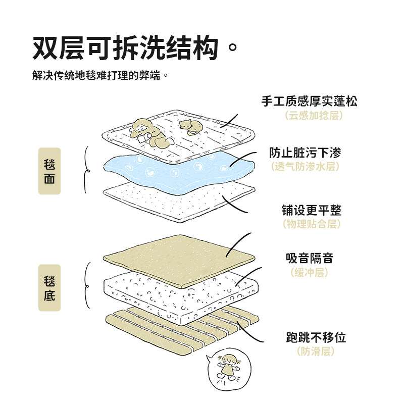 【质感肌理款】CCF 普鲁士海双层可拆洗蓝色地毯可机洗客厅中古风