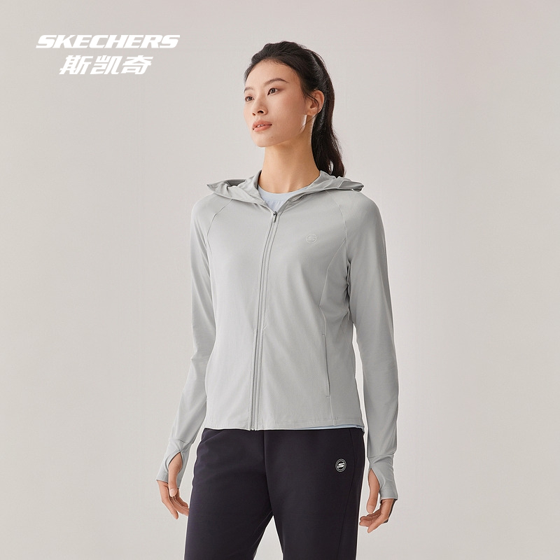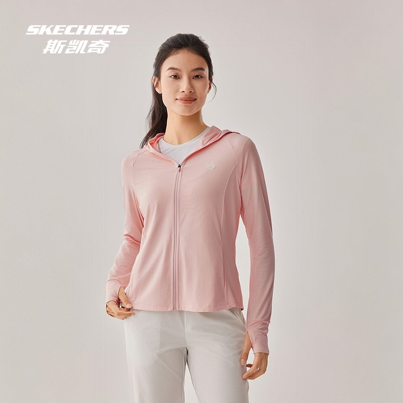 斯凯奇运动服休闲服装夏季舒适连帽防晒外套吸湿速干女子防晒