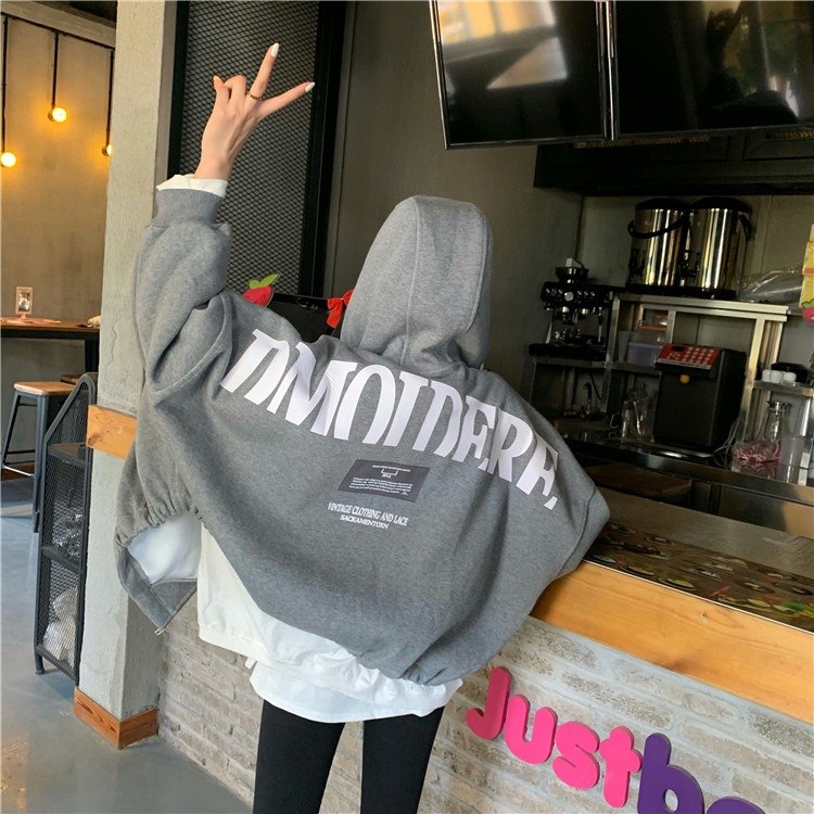 情侣外套女ins超火2025新款春秋韩版学生宽松原宿风bf拉链卫衣潮