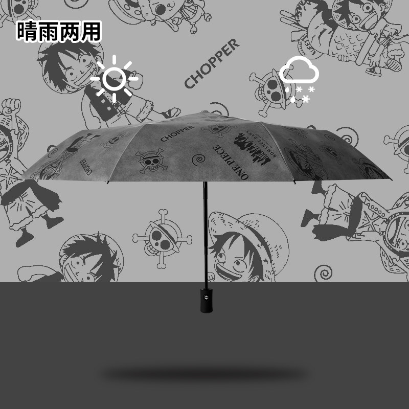 自动雨伞女晴雨两用折叠海贼王路飞防晒防紫外线动漫遮阳太阳伞男
