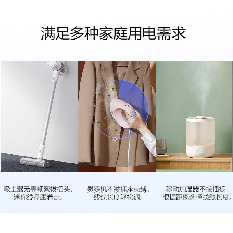 公牛插座板可移动伸缩电线卷线盘拖线板长线插板带线接线板电缆盘