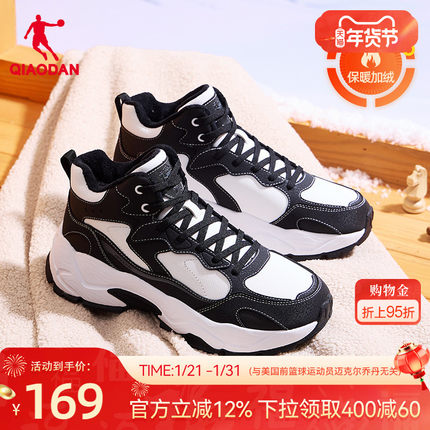乔丹棉鞋男鞋2025冬季皮面防水高帮加绒保暖休闲鞋黑白户外运动鞋