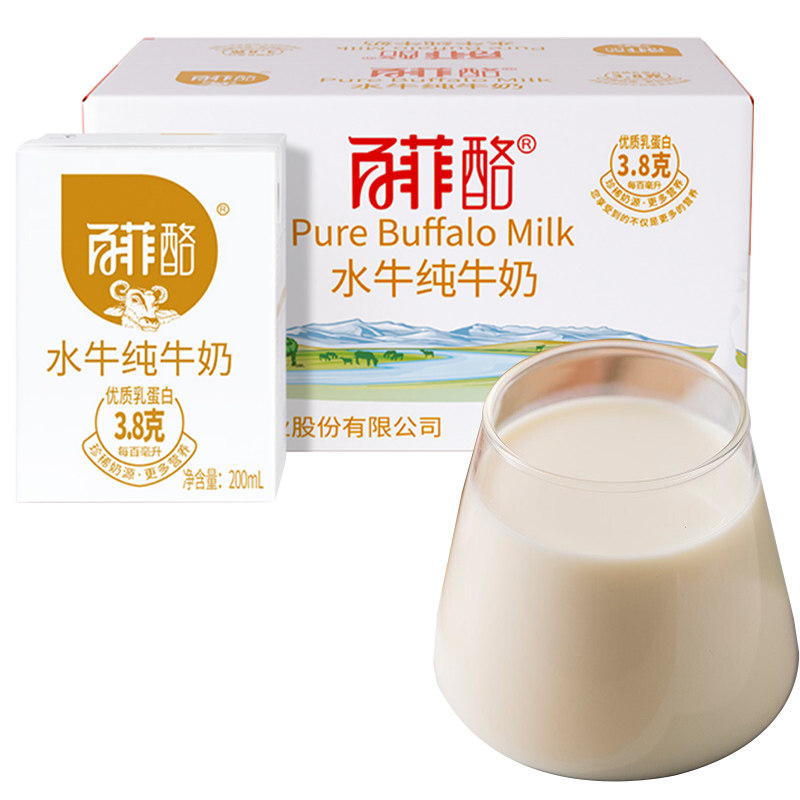 百菲酪水牛纯牛奶3.8系列 200ml*10盒 学生早餐广西特产水牛奶