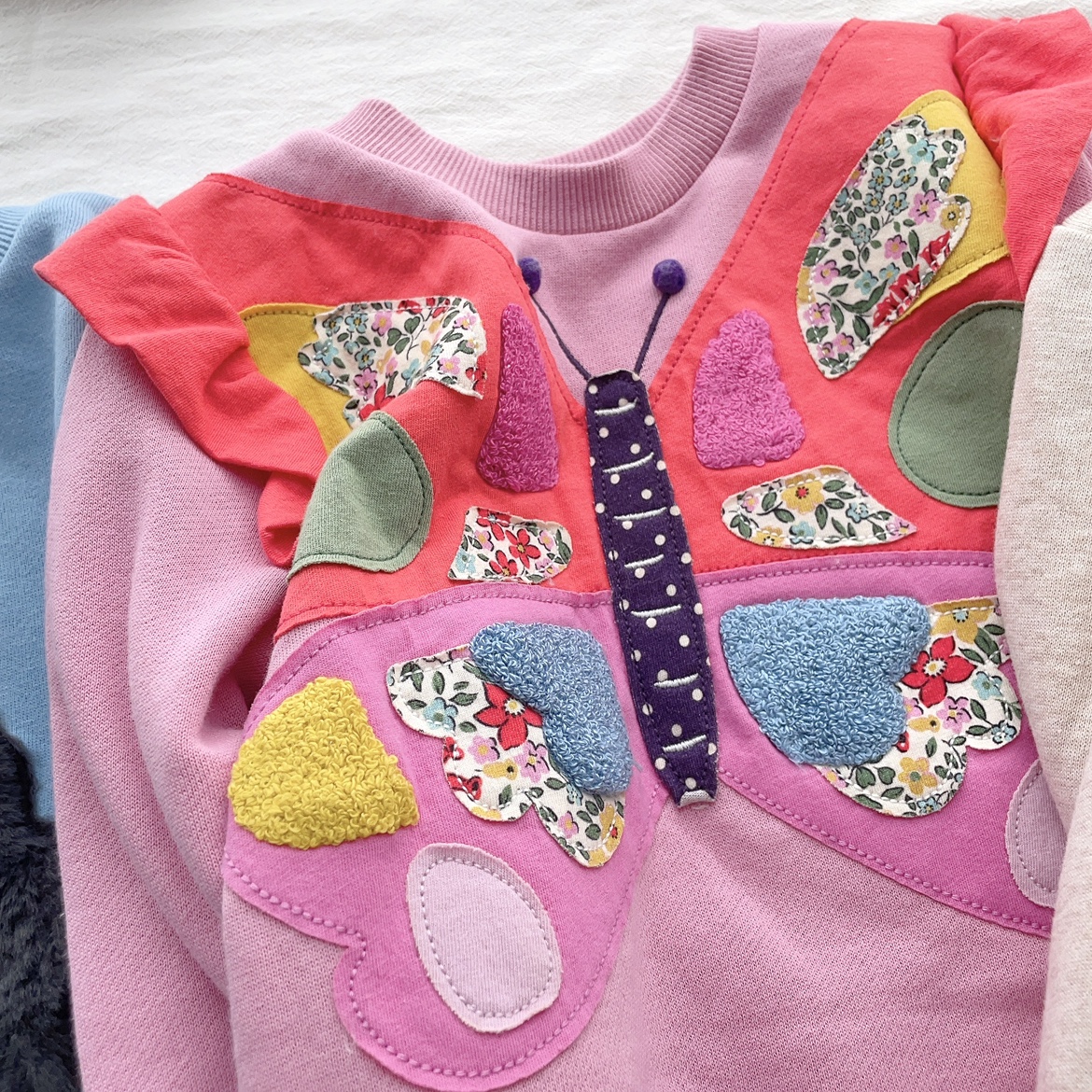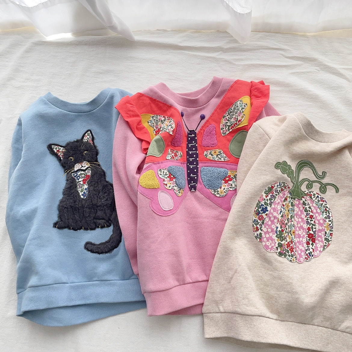 98-152英单BD女童春秋冬薄绒南瓜猫咪蝴蝶刺绣套头运动卫衣儿童