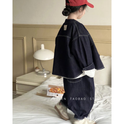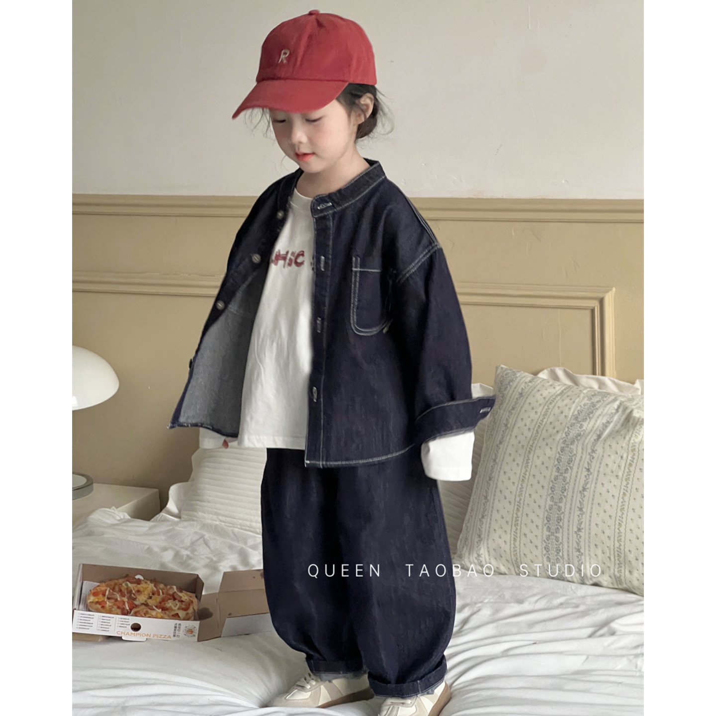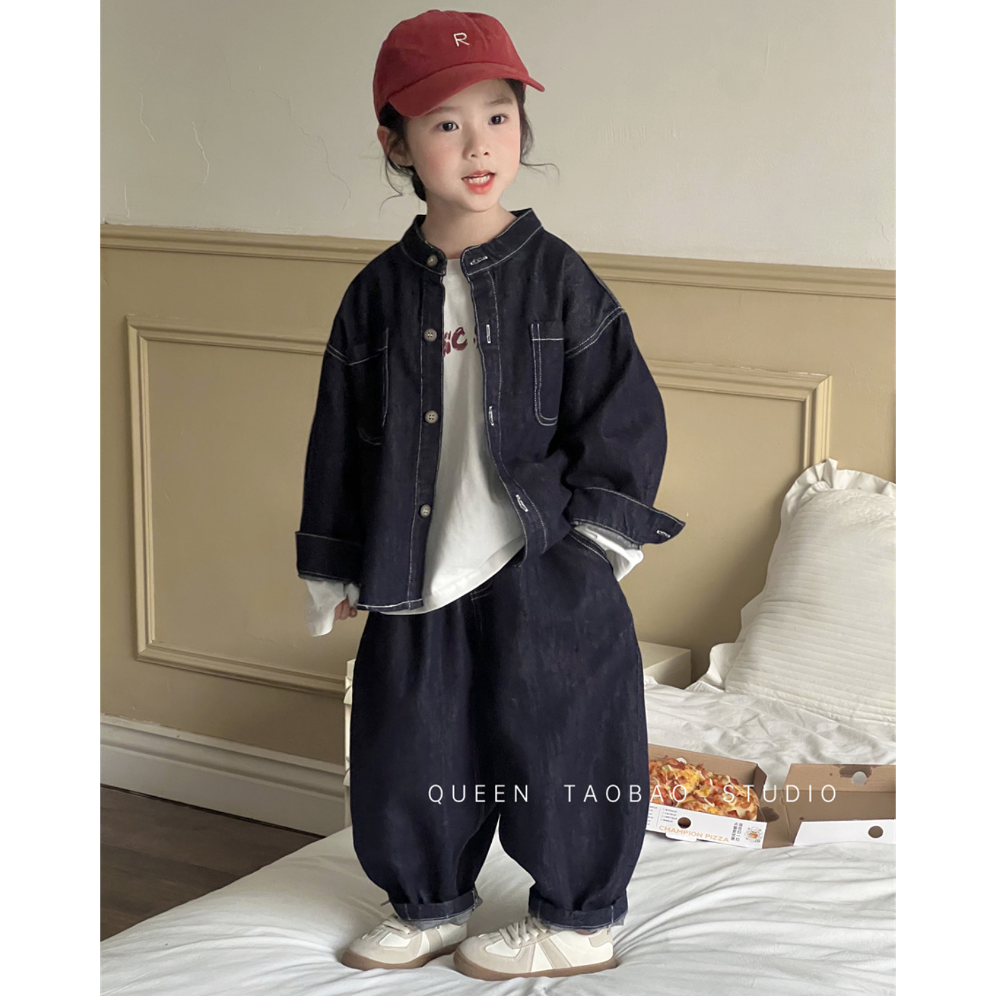 儿童牛仔衫韩国男女童牛仔套装2025春秋宝宝洋气外套萝卜裤两件套