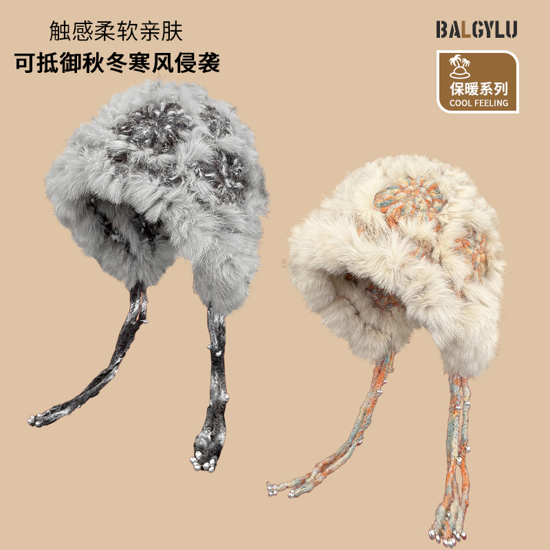 2025新款仿兔毛针织帽子女秋冬季加绒保暖百搭流苏辫子护耳毛线帽
