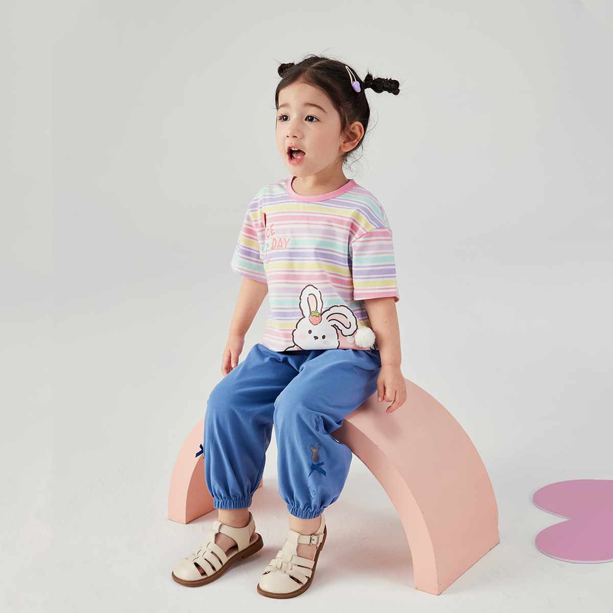 [7A抗菌]女童宽松t恤小童可爱小兔短袖儿童甜美夏装7宝宝夏日衣服