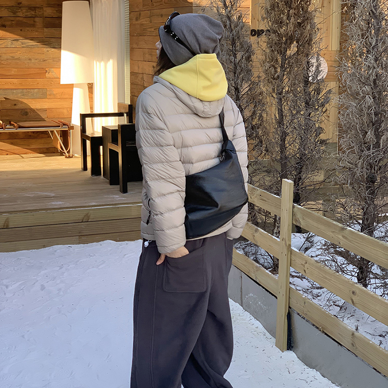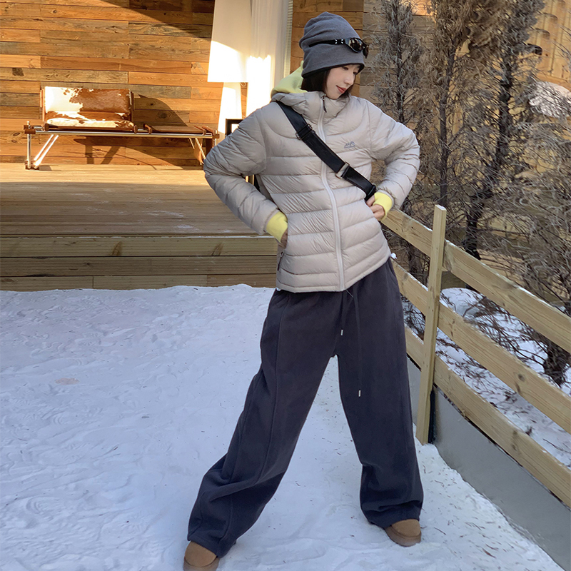 NUOMICI 灰色连帽羽绒服女秋冬款轻薄修身排骨休闲拉链外套上衣