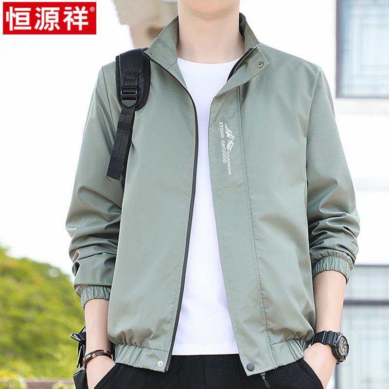恒源祥男士立领外套2025春秋季纯色运动休闲冲锋衣韩版新款夹克衫