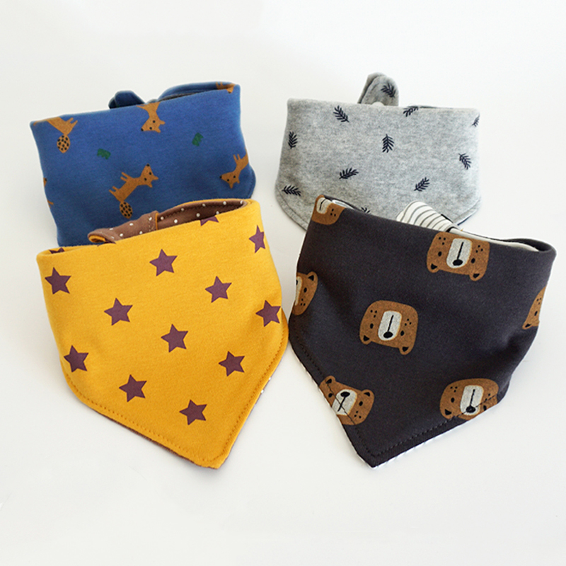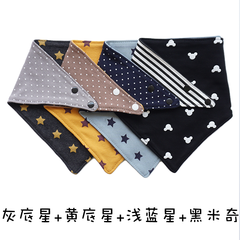 韩版春秋新款宝宝口水巾婴儿三角巾男童围嘴大号围兜双面纯棉围巾