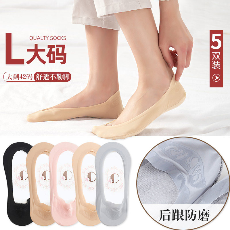 大码船袜女冰丝纯棉底浅口隐形硅胶防滑不掉跟夏天单鞋薄袜子加大