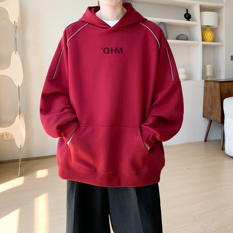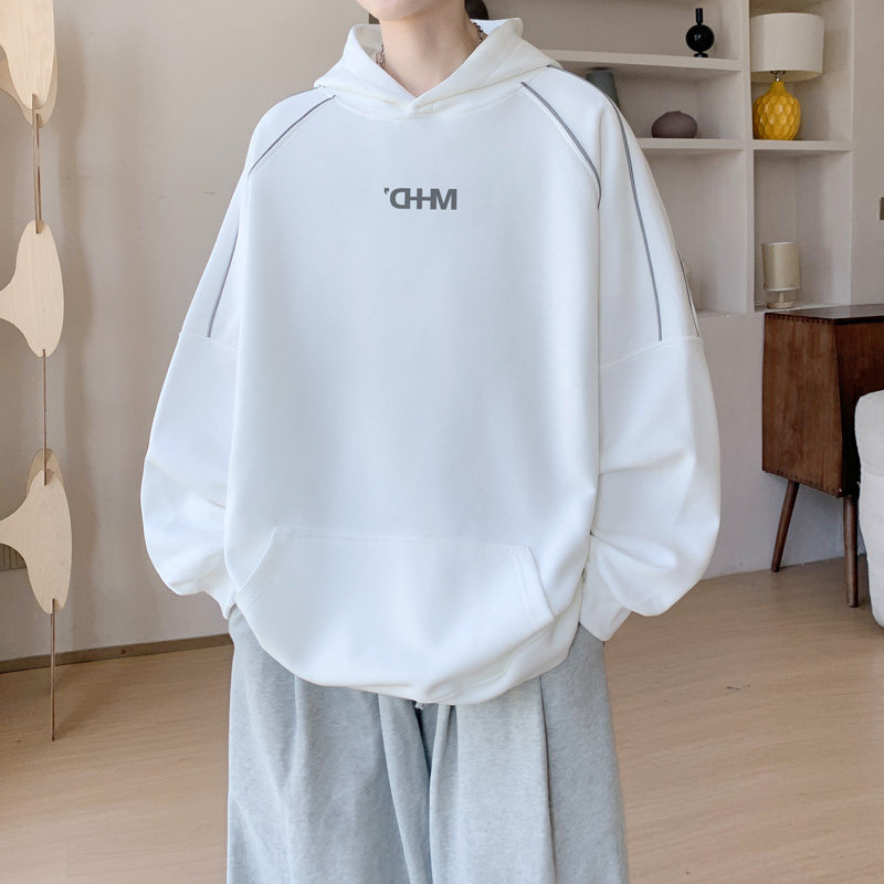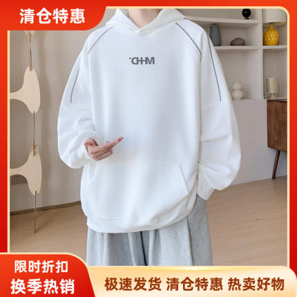 华加厚棉帽衫新款上市印花内景秋冬重磅休闲线条连帽卫衣男青年