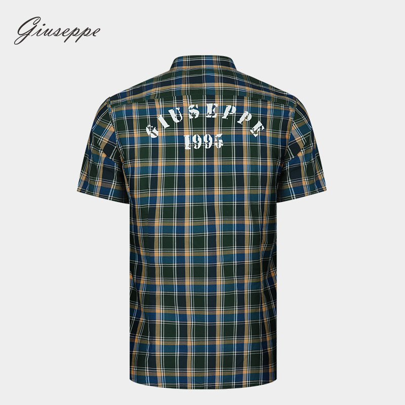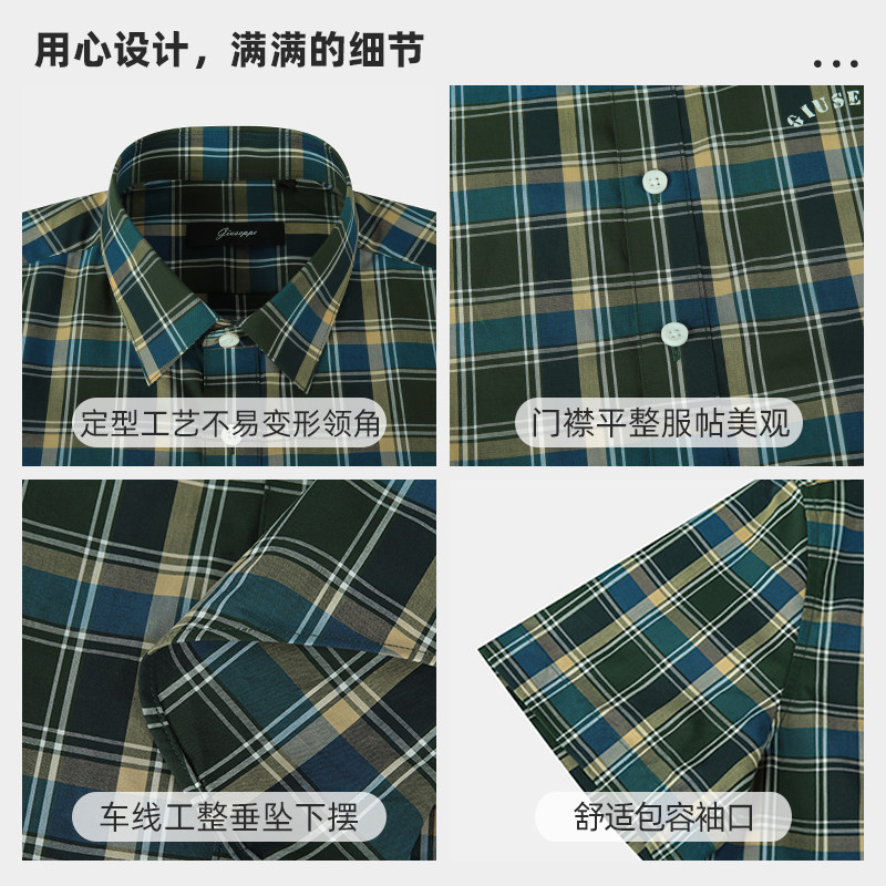 乔治白春夏男士短袖衬衫纯棉尖领衬衣蓝绿格纹韩版修身休闲上衣