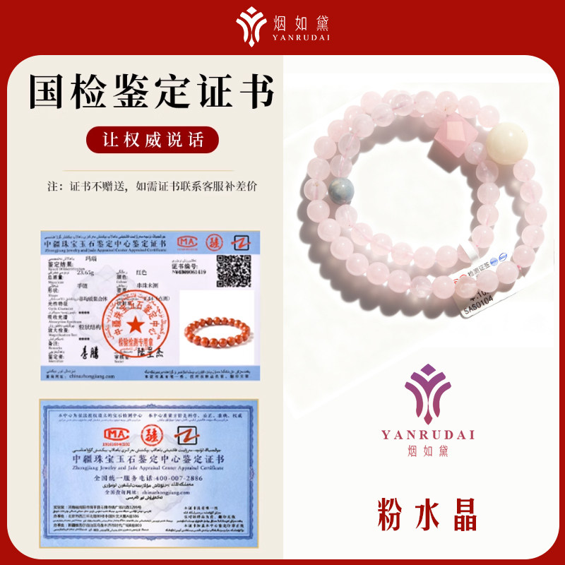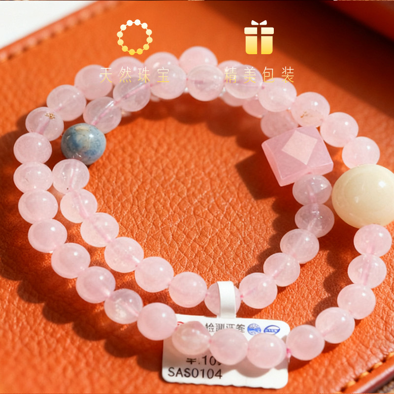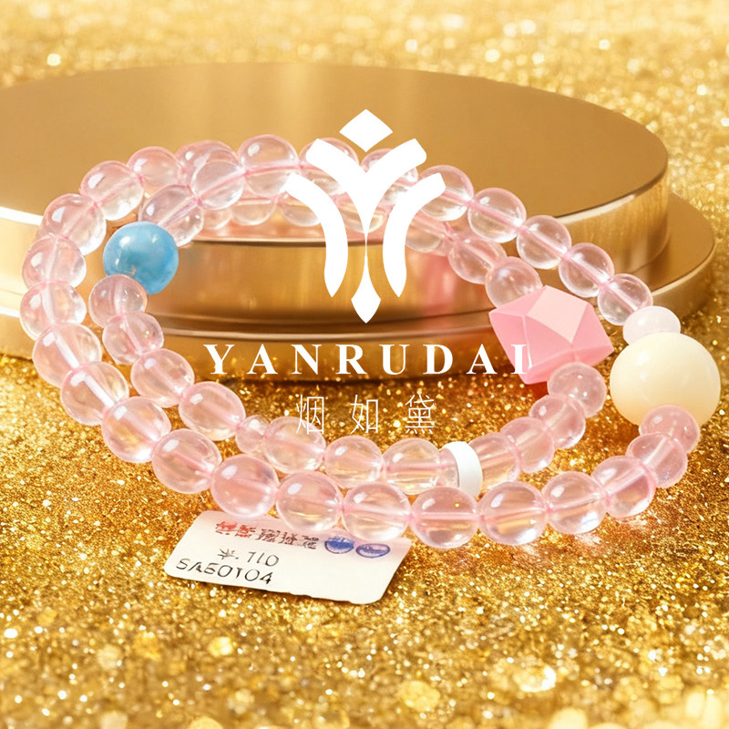 烟如黛天然粉水晶手串女双圈手链礼盒包装设计精致天然粉色百搭