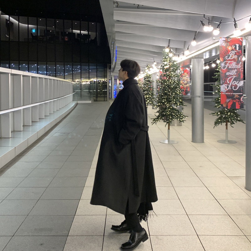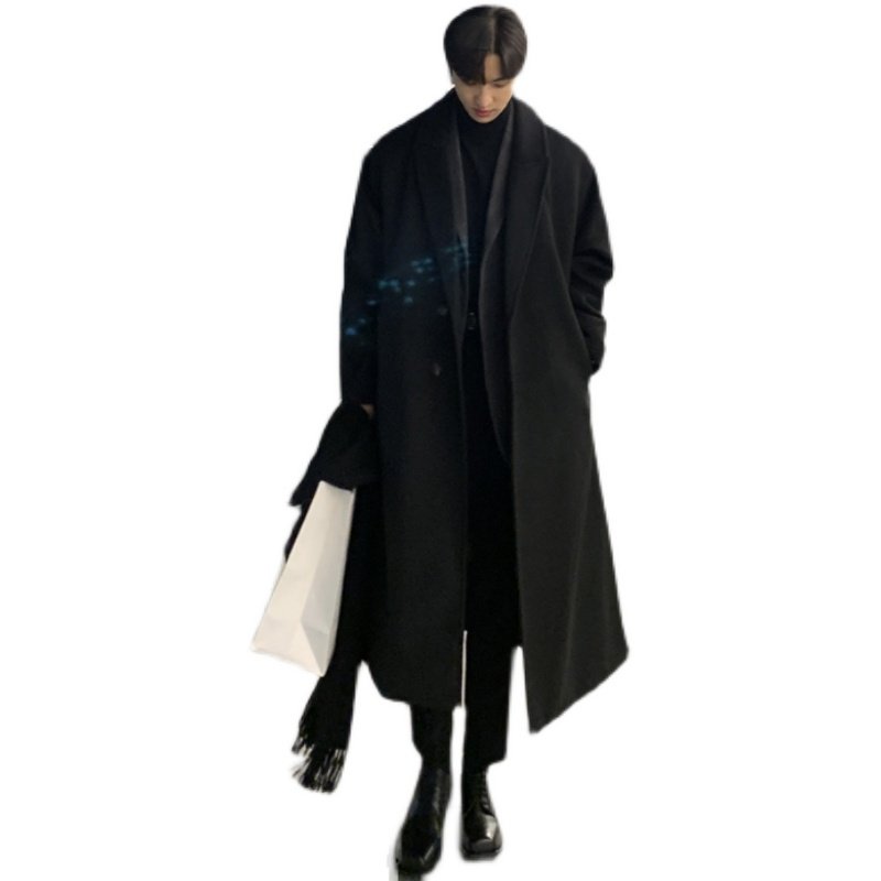 2024新款毛呢大衣男宽松休闲日系廓形羊毛呢子长款过膝复古厚外套