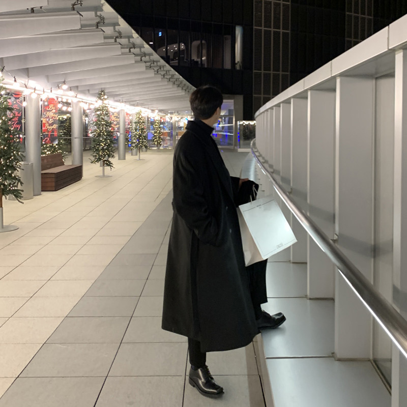 冬季新款日系廓形过膝毛呢大衣